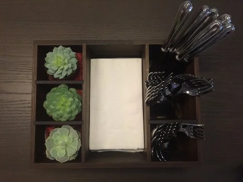 Per Food52 -- This might be the best way to hold your napkins, forks, spoons, and knives when you’re entertaining. The large size of this beautifully handcrafted holder has a section in the middle perfectly sized to hold your dinner napkins, along with 6 smaller sections for all of your flatware. The smaller size nicely fits cocktail napkins in the middle and also has 4 smaller sections for your flatware. Leave the holder out all the time because it’s classic enough to match with everything—and it’s super functional: Sections are removable for easy cleaning and oiling.