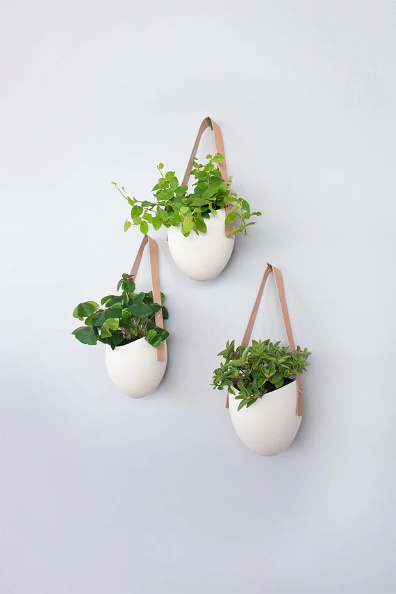- Porcelain and leather hanging planter - set of 3 ($135)