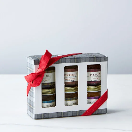 Here's how to make someone happy: Give them six miniature jars of Spoonable's excellent rich, salty caramel sauce. Five simple ingredients (including smooth European-style butter and sea salt from the Camargue region of France) yield a perfectly smooth sauce. Included are a spicy chili caramel, a floral lavender caramel, a chewy sesame with white sesame seeds, a peppered orange with Tellicherry pepper and fresh orange zest, and a buttery apple pecan. - Food52